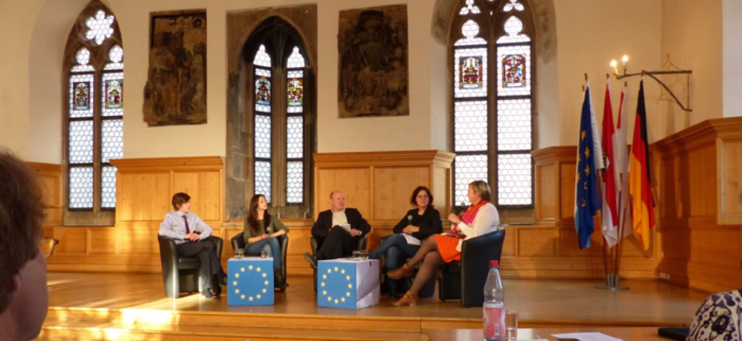 Im Vorfeld der Wahlen zum Europäischen Parlament im Mai 2014 sollte ein Blick auf Europa Stimmungsbilder liefern. Journalisten aus Cordoba / Spanien (Araceli Ruiz Arjona), Kavala / Griechenland (Lydia Elioglou) , Glasgow / Großbritannien (Callum Mc Sorley) und Atlanta / USA (Kimberly Turner) diskutierten hierzu. Ein Vortrag von Prof. Dr. Roland Sturm beleuchtete den „EU-Skeptizismus und Populismus in Europa“.
