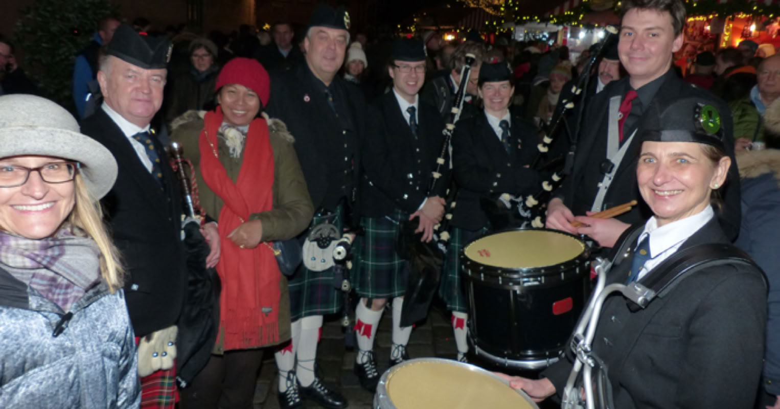 Zu weihnachtlicher Musik mit der Glen Regnitz Pipe Band, einer Dudelsack-Formation, luden die Partnerschaftsvereine Glasgow-Nürnberg und Atlanta-Nürnberg in Verbindung mit dem Amt für Internationale Beziehungen ein.