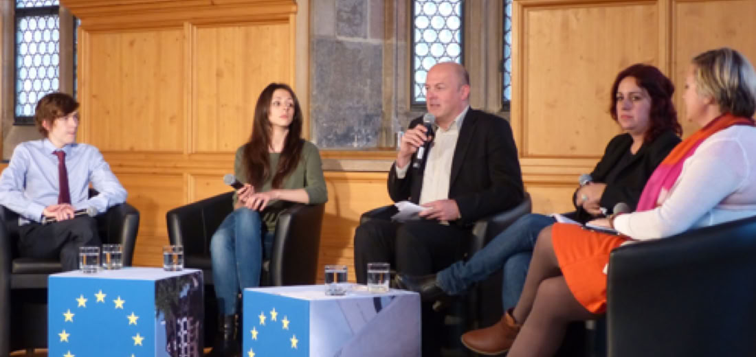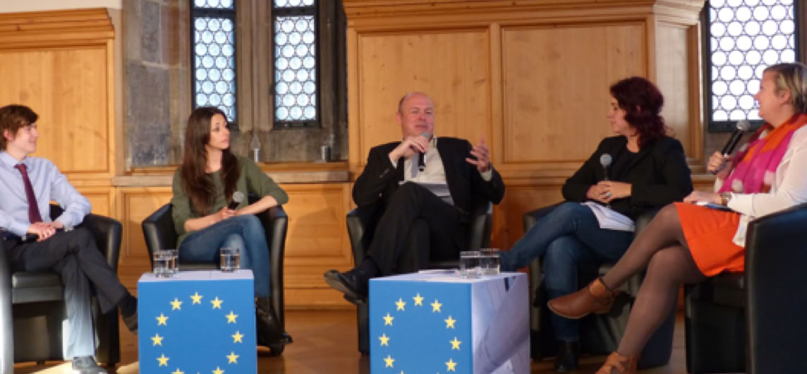 Im Vorfeld der Wahlen zum Europäischen Parlament im Mai 2014 sollte ein Blick auf Europa Stimmungsbilder liefern. Journalisten aus Cordoba / Spanien (Araceli Ruiz Arjona), Kavala / Griechenland (Lydia Elioglou) , Glasgow / Großbritannien (Callum Mc Sorley) und Atlanta / USA (Kimberly Turner) diskutierten hierzu. Ein Vortrag von Prof. Dr. Roland Sturm beleuchtete den „EU-Skeptizismus und Populismus in Europa“.