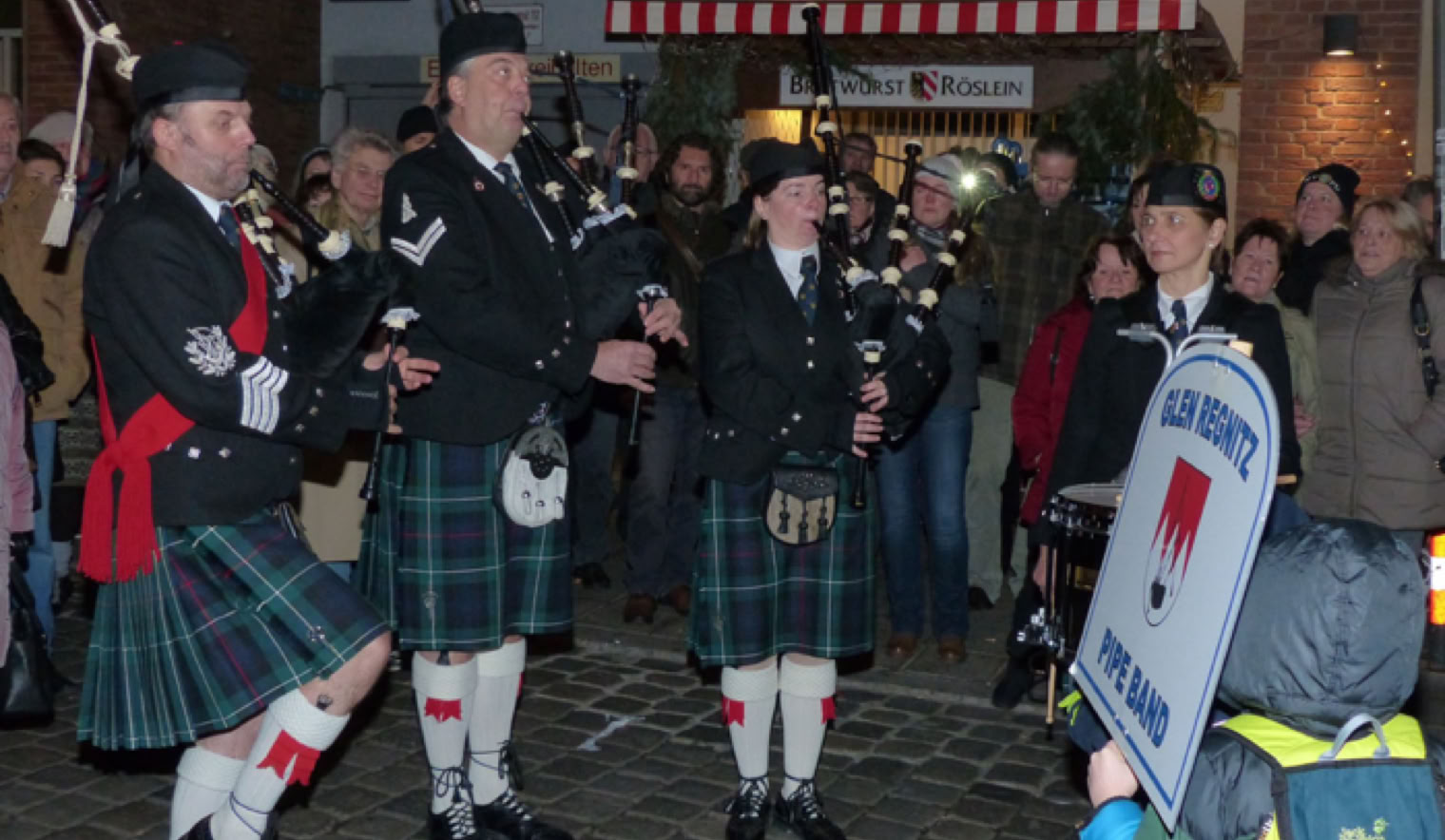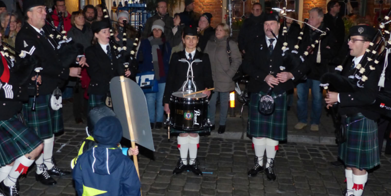 Zu weihnachtlicher Musik mit der Glen Regnitz Pipe Band, einer Dudelsack-Formation, luden die Partnerschaftsvereine Glasgow-Nürnberg und Atlanta-Nürnberg in Verbindung mit dem Amt für Internationale Beziehungen ein. Mit anschließendem Get-together am Atlanta-Stand.