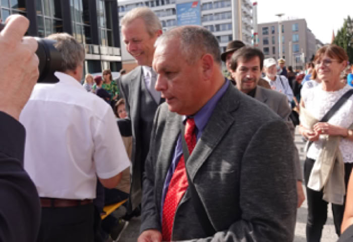 Die Urkunde überreichten dem Preisträger Oberbürgermeister Dr. Ulrich Maly und Anne Brasseur, Mitglied der Jury und unter anderem ehemalige Präsidentin der Parlamentarischen Versammlung des Europarats, die auch die Laudatio auf Rodrigo Mundaca hielt. In seinem Grußwort lobte der ehemalige Bundespräsident Joachim Gauck Nürnberg als eine Stadt, die Fremde und Minderheiten willkommen heißt, und in der sich Menschen seit Jahrzehnten für den Schutz der Menschenrechte einsetzten.